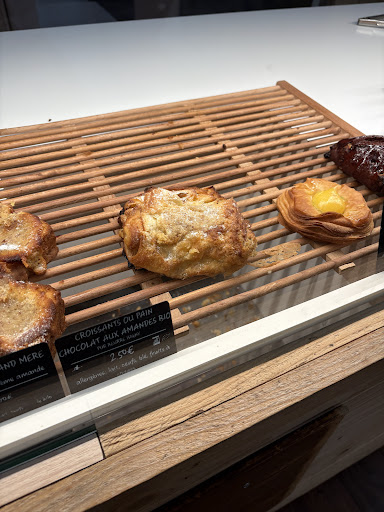 Read moreLa vitrine est une magnifique promesse. J'ai pris un pain cacao, une viennoise pepite de chocolat, une part de brioche citron, une tartellette chocolat et une baguette ribourd (nom pas exact). Décevant. Point communs st tous bourratifs, compacts, pas de legèreté. La tartelette banale, aucune subtilité, grossière presque. Tout fait envie, ms déçue, surtout pr ce prix là. Mais alors pq cette file d'attente? Une tendance, ou mes gouts sont en décalage avec les bobos...