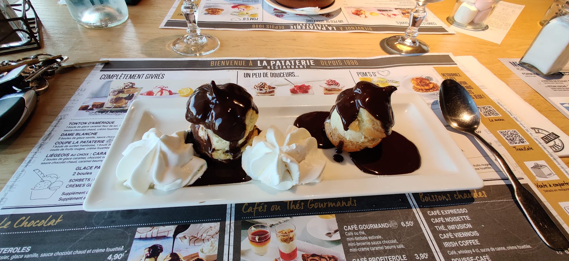 La suite n'a pas été bien plus agréable. Du gras, du sel et pas de saveurs. Les assiettes sont bien remplies, on ne peut pas faire se reproche mais à la Pataterie, les patates devraient être à tomber, non ? Je vous le dis, ce n'est pas le cas... Farineuses, abîmées, sans saveur... Pour la viande, il ne semble pas que la qualité soit supérieure, beaucoup de sel pour tenter de faire oublier qu'il n'y a là non plus aucune saveur.