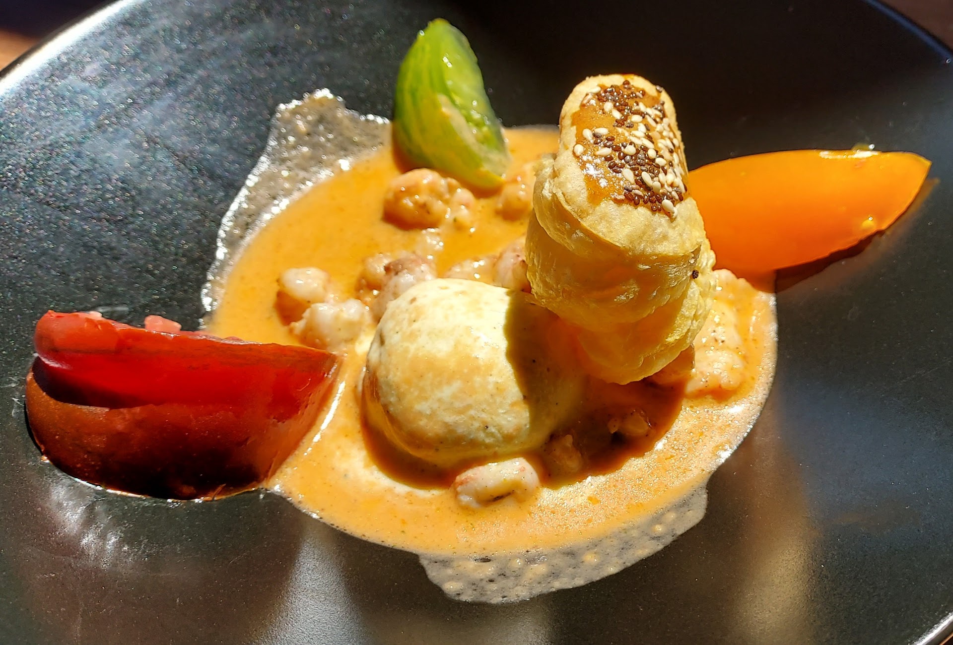 Ne vous inquiétez pas le bal des convives arrivent toutes les 15 minutes. On arrive au restaurant la serveuse nous montre du doigt où on doit s'installer. La prise des apéros a été commandé.... et 20 minutes après ils arrivent. A la vôtre. 5 minutes apres les amuse bouches arrivent.