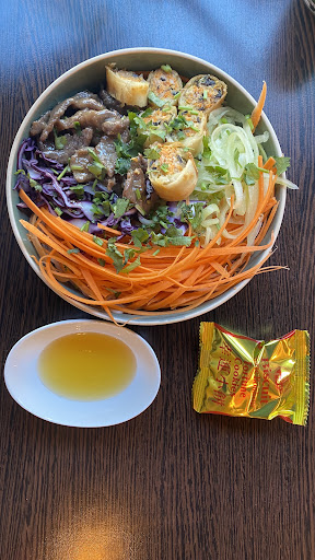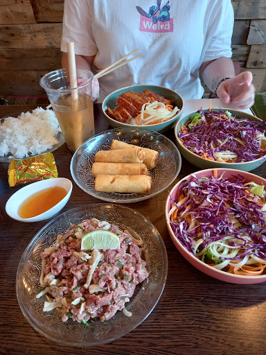 Monkey Lao, situé à Châteauroux dans l’Indre, vous invite à découvrir quelques spécialités asiatiques version street food. L’ambiance vous y plonge déjà. On y trouve aussi une étale d’épicerie. L’accueil est agréable et souriant. Vous devez régler votre commande avant qu’elle soit lancée (sur place ou à emporter). Il y a peu de places assises. J’ai pris un bo bun (mon péché mignon) avec une boisson exotique dont mon choix a été hésitant tellement que les propositions sont nombreuses (boissons du Japon entre autre). Et vous avez droit aussi au fameux biscuit chinois avec sa prédiction. Pour ce bo bun les nouilles sont froides (ailleurs certains les font chaudes). Comme d’habitude on y retrouve de la carotte, du concombre et d’habitude du soja, mais ici cela a été remplacé par du chou rouge et il n’y a pas de cacahuètes (c’est peut être pour éviter les allergies). La viande de bœuf est soigneusement préparée dans une marinade et les morceaux de nems sont presque fondants. Habituellement on sent le croquant de la friture mais là non, c’est très appréciable. Juste un petit bémol sur les nouilles, elles ne sont pas assez égouttées. J’ai eu du mal à sentir la sauce dans laquelle baignent les nouilles. Pour ceux qui cherchent de l’exotisme dans leurs assiettes, je vous invite à y aller. J’ai hésité à prendre le burger servi avec des chips aux crevettes. Si je repasse dans la région, je pense que je l’essaierai....