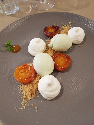 Très belle salle. Repas gastronomique parfait Il serait bien de préciser que les champignons forestiers sont composés de morilles entre autres, elles sont fortes en goût donc peu éventuellement gâcher la viande en l'occurrence les suprêmes de pintade qui étaient très fondants Le palet de chacun et différent mais l'estomac n'apprécie pas forcément 🤢 Le regret dans tout cela c'est que le service est beaucoup trop long , trop d'attente entre chaque plat ,nous ne sommes pas dans un fast food,je le conçois mais presque 3h pour un repas apéritif/amuse bouche/entrée/plat /dessert🤨 Vous mettez beaucoup en avant vos figues, que nous avons apprécié mais dans le crémant soyeux plus généreux car le sirop de figue n'était presque pas present❓ Une petite présentation du chef aurait été un plus et la serveuse,qui semblerait être la patronne devrait se faire greffer un sourire Très bon repas. Nous conseillons Mais nous irons quand même essayer ailleurs Bon ne...