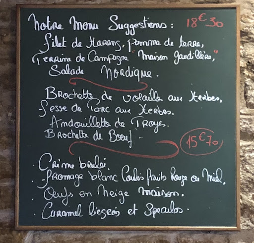 Read moreThey do great barbecued meat with potatoes in their jackets or potato gratin. We liked the confit duck and something which Google translate called ‘pork butt’, both cooked on the barbecue. Though it was a very hot evening we were cool because of the air conditioning. The waitress was very kind to us and recommended great desserts and wine by the glass which we liked. We had a Chardonnay which was off-dry and a nice red called Moulin ‘s vert. The chocolate cake was runny in the middle and extremely good. A French guy next to us had profiteroles with hot chocolate sauce which he said was very good. We are going to try to come back tonight and get the profiteroles! It all felt like good down-to-earth French food. It was very good value. They gave us some tasty olives and a free drink at the beginning of the meal that I think had cassis in it....