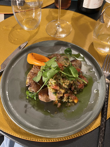 Wonderful! This intimate restaurant /wine bar is just perfect. A single three-course menu is offered, which changes every day. Our dinner was beautifully presented and tasted delicious. Small plates of nibbles can also be ordered - we enjoyed an assortment in the comfortable bar with a cocktail before going in to dinner. An excellent selection of wines are listed, also by the glass. The setting in an old stone house, with interesting architectural details and plentiful artwork (including local ceramics, leather and graphics for sale in the boutique) adds to the pleasure. We ate there in April when the evenings were still cool - in warmer weather there’s generous outdoor seating as well. Les vignes d’Hortense is well worth a detour - just for the food and wine - but an even better idea is to stay overnight at the next-door L’Atelier du Relais, where bed and breakfast is hosted by an architect and a ceramic artist. Do not...