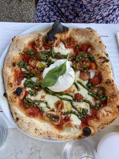 Quite possibly the best pizza I've had outside of Italy, and as good as most of the Italian pizza I've had too. I thoroughly recommend eating here. The setting initially feels like it might be unpromising situated next to a roundabout, but in a quiet village with little traffic you quickly forget that you're roadside when sitting on the terrace, helped by beautiful planting and pretty lighting, and quality terrace furniture that the owners have clearly invested in. The service was good, but they were super busy and we did need to ask for some drinks a couple of times. Very forgivable as the place was packed (do book ahead, especially at weekends) and the staff were obviously working hard. They were helpful and polite throughout the evening. Prices were very reasonable. I have a friend who lives in the village so when I next visit I'll be suggesting that we go back. Looking forward...