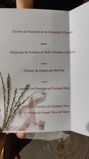 Nous avons diné pour le réveillon de l'an avec un menu unique à 80€ et le moins que l'on puisse dire, c'est que nous aurions dû rester à la maison. Il y avait deux salles : celle du haut qui était plutôt classe et rénovée mais nous avons eu la malchance d'être au sous-sol. Un caveau lugubre sentant le renfermé et servant de débarras pour des bouteilles, des lampes et autres bougies inutilisées. Les couverts et verres n'étaient pas propres, les chaises étaient vieilles et moches, bref un début de soirée prometteur... Les verres de vins ont été servis sans présenter les bouteilles, le kir était mal dosé et les mises en bouche étaient passables (macaron de foie gras et gougères au fromage). En entrée, la terrine de foie gras était bonne mais servie sans toast, avec 3 feuilles de mâche et une compotée d'oignons dans un récipient en carton. Très limite quand on voit le prix du menu. Le premier plat aux Saint-Jacques était plutôt correct mais nous avons eu la surprise de trouver des rondelles de chorizo dans notre assiette. Ca n'avait rien à faire dans ce plat selon nous, surtout en simple rondelle comme à l'apéro. Le chapon fut le pinacle de ce repas en vous laissant juger la photo. Aucune morille, aucun légume, chapon surement surgelé et un pauvre soufflé de pomme de terre qui lui-même se demandait ce qu'il faisait là. L'assiette de fromage n'avait presque aucun goût, surement du premier prix et la serveuse n'a même pas prit le temps de nous les présenter. En lui demandant quels sont ces fromages, impossible pour elle de nous répondre pour l'un d'entres eux. Au bout de 5 min à l'attendre, nous finissons nos fromages. Au bout de 20 min, la serveuse revient nous dire : "Excusez-moi, vous avez déjà terminé ? C'était du soumaintrain" puis s'en va sans nous débarrasser. Le dessert était le seul qui relevait un peu le niveau pour la présentation mais il y avait beaucoup trop de noix de pécan ce qui gâchait définitivement ce repas, catastrophique du début à la fin. En partant, nous avons fait part de notre mécontentement à la gérante, qui avait oublié de nous rendre la caution de réservation. Une honte pour la cuisine, le service et le cadre de payer autant pour un résultat aussi navrant, selon nous ce ne sont pas des professionnels de la...