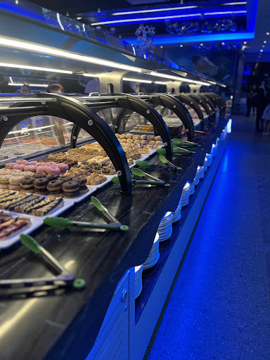 Et d’un premier abord, visiblement, « ça le fait » : Une grande salle de 300 m² et de 150 couverts à la décoration un poil kitsch et clinquante, mais propre, un staff poli, efficace et affairé, une formule à 12,90 € les midis du lundi au samedi (et à 18,90 € les soirs, dimanches et jours fériés) et un grand buffet avec un large choix dans le fond. Hélas, là où le bât blesse, c’est qu’au niveau gustatif, le ramage ne se rapporte pas forcément au plumage, certains plats n’ont pas la fraîcheur de leur visuel et le pire parfois côtoie le meilleur, faute d’avoir été chauffés, et réchauffés trop longtemps… Perso, je suis tombé sur des calamars frits plus difficiles à mâcher et à avaler qu’un chewing-gum Malabar, des nems secs comme des coups de triques, et des desserts industriels (mini éclairs ou autres) bien peu appétissants et un peu chiches en fin de service.