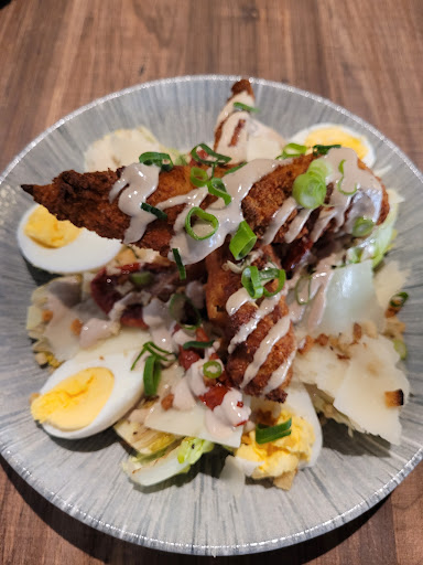 Read moreBien que "perdu" dans une zone d activité, le bâtiment extérieur est sympathique et moderne. On entre : sur notre gauche grande fenetres qui donne sur la cuisine! J'adore. Au plafond des ustensiles de cuisines en noire a cote de dalles anti bruit. Un bar où lnln peut s installer pour boire simplement un verre en partageant quelques amuses bouches seul ou entre amis mais également un café. Des brises vue séparent quelques ilots de tables. La deco est sympathique, musique de fond dynamique ni trop forte, ni trop basse. Une belle terrasse où l'on peut manger. Le menu n est pas une liste à la Prevers, quelques classiques (variant tout de même) La carte des vin est sympathique, on a vue sur une cave dans la salle: ca fait sympathique et en plus ca décore. Mais revenons à l'essentiel : le plat. Donc pour ma part une"classique" salade Cesar? Et bien non, la salade est une sucrine qui a été braisée, le poulet se retrouve enrobé d une belle et croquante panure. Les produits sont de qualités. Je reviendrais ...