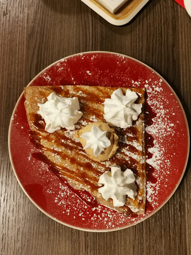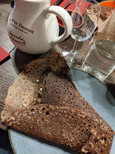 Unfortunately very disappointing experience. My wife is a huge crêpes fan and was looking forward to it for days. The place is cute and fits right into a mountain town. The folks were very friendly and nice. However, the galette with jambon, fromages des Alpes and egg had a burned taste to it. We were wondering why the crêpes were so dark but thought maybe it's the type of wheat they use. They claim to use all biological ingredients. While that might be the case, getting the burnt taste out of your mouth turned into a challenge. Real pity and too bad that we didn't say anything. That's on us. The overpriced drinks however, are on them. Hence no...