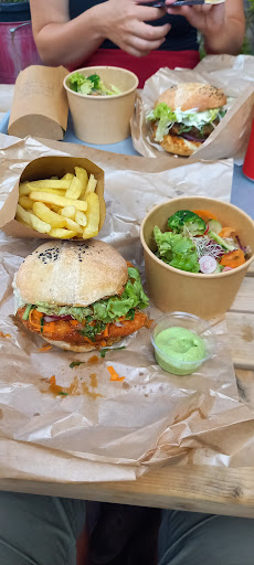 We hadden twee verschillende burgers die op een geheel eigen wijze, Japanse stijl, waren bereid op een huisgemaakt broodje. De salade die er bij zat was ook uitstekend. Bij de friet zit een zelfgemaakte saus. Om ter plaatse te eten is er buiten zitgelegenheid. Het dessert was ook super lekker en geserveerd in een potje. Vriendelijke eigenaar.