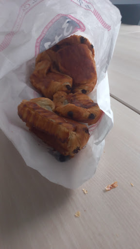 PASSEZ VOTRE CHEMIN. Que dire de ma visite de ce matin si ce n'est qu'au final les viennoiseries comportent effectivement beaucoup de beurre, et étaient bien fraîches. Lors de mon passage c'est uniquement le côté positif qu'il reste de ma visite une "manageure" qui semblait dépasser par le nombre de clients ,qui Autorise sans en avertir le reste des clients, des passefils pour ces jeunes clients du CFA .(ce qui est compréhensible)mais il aurait été beaucoup plus délicat de prévenir l'ensemble des clients présents, plutôt que d'attendre des réflexions et de répondre sèchement "qu'ils étaient habitués" . Sans que nous pauvre quidam ne soyons informés . Il est clair que notre retard l'importait peu. C'est bien dommage car sa gestion du personnel semblait un peu aléatoire ...à poser et à distribuer les salariés à des endroits où ils attendaient le chaland alors que pour la viennoiserie et le pain ...à 1 servruse et demie la file s'allongeait .Jusqu'à ce qu'elle décide de faire l'inverse... Peut-être est-ce un mauvais jour ? Cependant bien que le sourire et la bonne volonté de la serveuse ait été au rendez-vous , il semble que les consignes pour stocker et sevir les viennoiseries n'étaient pas non plus des mieux expliquées. Puisque insérer vingt-vienoiseries: 10 pains au chocolat et 10 croissants dans un petit sac De 30 cm sur 10. .....Ce qui devait arriver arriva.... 5 minutes plus tard lors de mon arrivée à ma réunion, les viennoiseries étaient un tas immonde collées ensembles. de quoi avoir honte. Domage j'étais pourrant de bonnd humleur ce matin. Merci, .....je ne reviendrai pas chez...