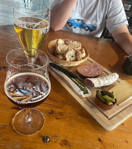 Read moreBel endroit pour déguster des bières. Choisies avec soin, à la pression, en bouteille ou en canette, irlandaises, belges,allemandes, artisanales ou pas, vous trouverez forcément l'accord parfait avec les saucissons, les planches de charcuterie ou de fromage proposées le soir. Si vous passez à midi, vous y trouverez un plat du jour original et unique chaque jour du lundi au vendredi, avec des formules entrée-plat-dessert à un tarif...