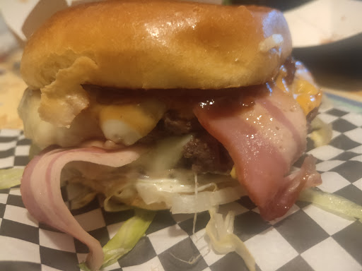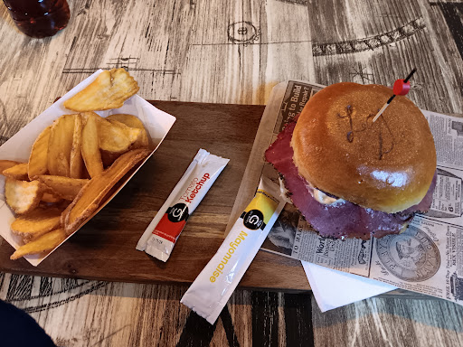 Je suis extrêmement déçu, les hamburgers, bien que servis avec des pains qui ont l'air faits maison, sont très similaires à ceux de chez McDo. Le steak est incroyablement fin et semble bouilli plutôt que grillé, manquant ainsi de toute saveur et de texture agréable. Tout semble industriel, des steaks aux accompagnements, et même les sauces sont servies en sachets, ce qui donne une impression de repas précuit et sans caractère.