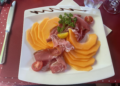 Au niveau des entrées: j’ai pu découvrir le jambon melon ou plutôt le melon et jambon. La qualité du jambon et du melon est excellente mais il y a un déséquilibre dans les quantités avec beaucoup de melon est 2 fines tranches de jambon.