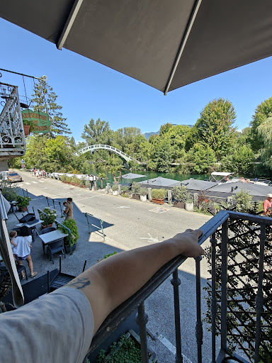 Read moreJ'avais réservé sur le site du restaurant une table pour 3 personnes en précisant une demande de chaise haute pour notre fils un dimanche pour 19h30. Malheureusement ce soir-là, la pluie était de la partie donc il était impossible d'installer les clients sur les tables le long du canal. Lorsque nous sommes arrivés dans le restaurant, aucune table ne nous avait été réservée. Nous avons dû ressortir de la salle puis nous asseoir au comptoir du bar sur les tabourets hauts avec notre fils de 2 ans et demi. L'un des serveurs nous a indiqué qu'une table côté restaurant allait se libérer dans quelques minutes alors en attendant nous avons décidé de prendre un verre au bar et commandé les petits saucissons prévus dans le menu enfant. La salade et les morceaux de salami (et non saucisson) sont arrivés après de longues minutes d'attente... Le serveur est venu à plusieurs reprises nous informer que la table allait se libérer dans 2 minutes...