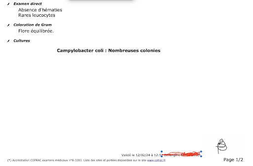 Quelques heures après mon repas chez O'tacos, j'ai commencé à ressentir des symptômes alarmants : maux de ventre, nausées, et malheureusement, cela a évolué en symptômes plus sévères qui m'ont contraint à une hospitalisation. Le diagnostic a révélé une infection par Campylobacter coli, une bactérie souvent associée à la consommation d'aliments contaminés ou mal préparés.
