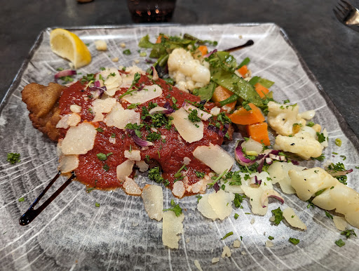 Read moreWir haben 2 caesar salad bestellt, einmal in vegetarischer variante mit "vegetarischem poulet". Das Poulet in meinem Salat war stellenweise noch roh worauf hin mir ein neuer Salat gebracht wurde. Die Sosse hatte einen viel zu starken Senfgeschmack, ansonsten kaum Geschmack. Der Salat war teilweise braun. In der Vegie-Variante hatte es drei kleine Bohnenstückchen, ein kleines Stückchen Fleisch und ein winziges Stückchen Blumenkohl - man hatte den Eindruck, dass einfach alle Reste in dem Salat entsorgt wurden. Das "vegetarische Poulet" haben wir nicht gefunden. Auf Nachfrage hin, wurde uns erklärt, dass dieses Produkt ausgegangen ist - das hätte man vor dem servieren sagen müssen, das kann man doch nicht einfach verschweigen! Wenigstens mussten wir den Vegie-Salat nicht bezahlen. Das Brot musste man auch extra bestellen, ob wir es auch extra bezahlen mussten ist unklar. Weil es weder Tischsett noch einen normalen Teller gab (der Salat wurde in einer fancy Schüssel serviert) gab es keine möglichkeit das Besteck oder das Brot abzulegen (das Besteck fand keinen Halt in der Schüssel). Was uns ebenfalls erschreckt hat, war, dass nicht alle Gäste die gleiche Speisekarte bekommen. Wir waren zwar Gäste des Hotels aber haben das Abendessen saparat bezahlt und haben zrotzdem eine stark reduzierte Speisekarte erhalten - man fühlt sich wie ein gast...
