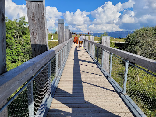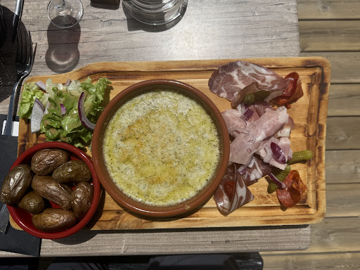 Bonjour . Avons ete mangé le jeudi 10 Juin 2021 à midi. Nous n'avons pas ete satisfait du tout. Prix des plats chers pour quantité faible et cuisine mediocre. Mon mari avait pris un gros hamburger avec frites, 20 €. Alors: Quantite correcte mais ... frites molles et froides comme si elles avaient ete faites du matin ou de la veille en attente du client, 1 feuille de salade, 2 petits bouts de fromage non fondu sur des Diots froids à peine tiedes,, pain froid, et 2 petites rondelles de tomate. Moi j'avais commandé une grande salade 14 ou 16 € , je ne me rappelle plus. BOn, là aussi surprises ! assiette creuse mais peu grande avec quelques feuilles de salade et tenez vous bien: 2 quarts d'oeuf dur (donc 1/2 oeuf dur pour le plat....), 3 petites tomates cerise avec encore les petites feuilles qui auraient pu etre justifiées si posées dessus en guise de deco, mais ... non, que j'ai trouvé tout au fond de l'assiette; puis 4 petites tranches TRES fines de tomme de Savoie (?) et ... un tas de croutons bien cubiques froids industriels. Du coup on n'a pas pris de desserts. J'avoue que l'on aurait du en parler au moment de payer mais .... je craignais de m'ennerver au vue aussi du ton de la serveuse laquelle sous un sourire tres agreable au 1° abord, prenait tres vite un ton agressif avec paroles tres seches quand on avait pas voulu d'aperitif mais plutot des verres de vin du pays, quand on avait pas eu choisi nos commandes dans les 5 mn apres s'etre assis et quand on "osait" poser une question sur le hamburger....De plus, le couple de patron , je suppose avec tablier gris, ont passé 1 h assis à coté ataablés avec d'autres clients qu'ils devaient connaitre puisqu'ils leur ont raconte plein de choses sur les travaux de la terrasse, les gens mal polis qui venaient voir la vue sans consommer etc tout ceci à tres haute voix en criant presque, alors que le lieu est propice à un calme non monastique pour autant mais quand meme la foire !!!!! de plus ces 2 tabliers gris ne devaient ils pas etre en cuisine...