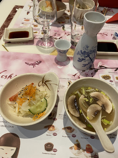 Le riz m’a paru un peu trop sec et manquant d’un peu d’assaisonnement, mais il était aggloméré de façon assez subtile et les morceaux de poissons étaient très bien. Les maki étaient réussis. La soupe miso et la salade de chou (cette dernière que l’on retrouve dans tous les restos « Japonais » en France, mais qui n’existe pas au japon…) étaient bonnes. Si l’on n’est pas trop exigeant, et qu’on ne cherche pas des sushi vraiment Japonais, ce restaurant peut convenir.