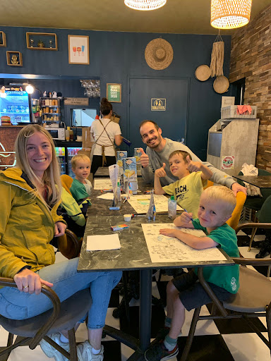 Na een dagje bezoek aan het kasteel van Bouillon kwamen we 's avonds op goed geluk Frites And Co binnengewandeld op aanraden van Google Reviews. We zijn enorm blij dat we dat gedaan hebben! De uitbater schoof onmiddellijk gastvrij een 3-tal tafeltjes tegen elkaar en deelde kleurbladen en krijtjes voor de kinderen uit. De avond kon toen al niet meer stuk :D. We werden enorm vriendelijk en snel bediend. De hamburger met Orvalkaas was overheerlijk en kan ik alleen maar aanraden. Ook de kipnuggets van de kinderen waren een voltreffer. Hier geen gemalen vlees zoals in andere zaken, maar een volwaardig stuk kipfilet en lekker gepaneerd. Als Belgen zijn we natuurlijk trots op onze frieten, maar ik en mijn vrouw moeten grif toegeven dat de frieten die we hier aten bij de beste waren die we ooit al gegeten hebben. Hoeft ook niet te verwonderen want de uitbater vertelde ons dat hij ze, net zoals bij ons, de enige echte goed manier dus ;) met de hand snijdt en 2x bakt in ossevet. Exact zoals het hoort. Sausjes waren bovendien a volonté en dat was hard nodig, want de frietjes zijn tot de laatste opgegeten :) Heel hard bedankt voor deze fijne en onvergetelijke avond!! PS: De feëerieke plek op het wondermooie plein dat je terug katapulteert naar de 18e eeuw en de lolly's voor de kindjes achteraf krijg je er allemaal...