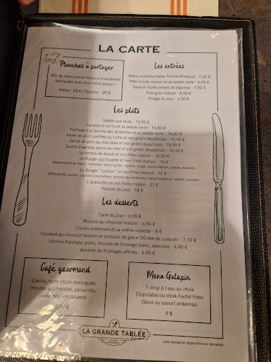 Read moreNous avons eu la chance d'être placés dans le coin sous les jambons qui est clairement le lieu le plus sympathique. Ailleurs m'aurait dérangé car il y a un petit côté réfectoire avec toutes ces tables rectangulaires les unes à côté des autres. Il serait peut-être bon de diminuer un peu le nombre de couverts pour faire respirer d'avantage le lieu en plaçant des îlots décoratifs. Du reste les murs sont jolis décorés dans la thématique Ardennes / boucherie / bistrot. Un poil déçu en m'attablant car je venais pour prendre une cacasse ou une salade au lard et j'ai appris qu'il y avait une pointe d'ail. Pour moi on ne met pas d'ail dans ces plats sacrés de mon enfance, j'ai donc choisi des joues de porc qui étaient délicieuses. Il y avait du croquant sur le gratin et c'est un bon point trop rare pour ne pas être souligné ! Les entrées, plats et desserts sont vraiment copieux. Si vous avez un appétit normal, misez plutôt sur 1 entrée + 1 plat ou bien 1 plat et 1 dessert, car ces derniers sont vraiment délicieux, comme on peut le lire sur les autres avis, et je pense qu'il serait dommage de passer à côté. Si vous avez très faim prenez les 3 ! Les plats étaient chauds, mon dessert aussi ! (clafouti aux pommes et boule de glace caramel). Le service était très agréable et les dames étaient adorables avec mes enfants (des coloriages sont mis à dispo) et patients avec mes parents seniors. L'addition grimpe vite, mais d'un autre côté il y a quand même des plats abordables et les sorbets sont à 2,50 €. Quant aux menus enfants c'est 10 € : imbattable ! Par contre pas de menu pour les adultes, c'est à la carte, c'est un petit moins je dirais. Il y avait du monde un midi en semaine en vacances. Donc je pense qu'il vaut mieux réserver pour les week-ends. Le parking est assez limité en nombre de places, n'hésitez pas à vous garer juste en face de l'autre côté de la route. Un lieu à tester au moins une fois dans le secteur...