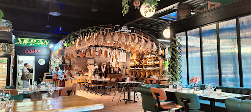 C'est grand et agréable. Nous avions peur de ne plus nous entendre quand toutes les tables seraient prises mais ça n'a pas été le cas. La décoration est chouette, notamment la cave à jambon. Au niveau du service, rien à dire. Nos serveuses étaient sympas et réactives. Les cocktails de nos apéritifs étaient tous très bons.