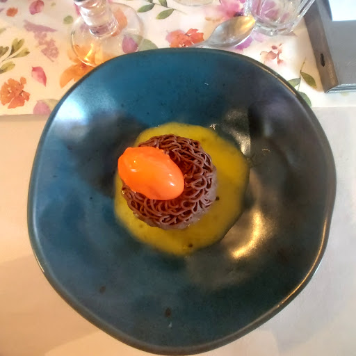 Read moreWe decided to stop here for the night on our way to Brussels avoiding the busier routes. The small town is atttractive and the hotel is set in an imposing centre of fine buildings.||The hotel has been in the same family for five generations and the family has its own farm where the beef and lamb are raised for the restaurant. We arrived on a Sunday afternoon obviously too late to expect lunch, but all the same we were able to tuck into a cheese salad washed down with the local cider to tide us over to dinner. Meals are served either on a Terrace overlooking the square, or in an atttractive dining room. Tables are set well apart and have comfortable chairs. We enjoyed a lovely meal on Sunday evening choosing the €27 menu. The food was served attractively, and was superb. Our room (9) was on the first floor and down a few steps. It was spacious with a sofa/daybed three small armchairs and a balcony overlooking a courtyard. The en suite bathroom was spacious. Breakfast is served in a separate room and for €10 there was a selection including boiled eggs ham cheese yoghurt fresh fruit apple and orange juice bread croissant etc. The hotel has been brought up to modern standards, the staff are friendly polite and helpful. We found it a delightful place to stay and intend to return, perhaps to explore the area. There is plentiful parking...