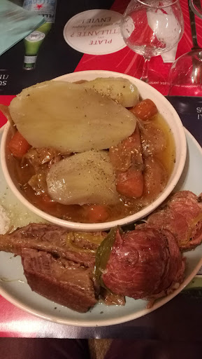 Nous sommes rentrés dans cette brasserie par hasard. Le serveur nous a installé dans une petite cour insoupçonné à l'arrière du restaurant, cadre verdoyant et calme. Nous avons commandé 2 menus charolais à 25 euros. Nous nous sommes régalés !!! La cassolette d'escargots, une tuerie. Quand au pavé de boeuf, la viande était tendre et la cuisson parfaite sans oublié des frites maisons (plutôt rare) excellentes. Pour finir, nous nous sommes laissés tenter par le gateau au chocolat maison, encore une fois, un sans faute. Bref, un service rapide, souriant et très professionnel; une cuisine maison authentique et de qualité; un rapport qualité/prix plus que raisonnable. Je ne peux que vous recommandé cet...