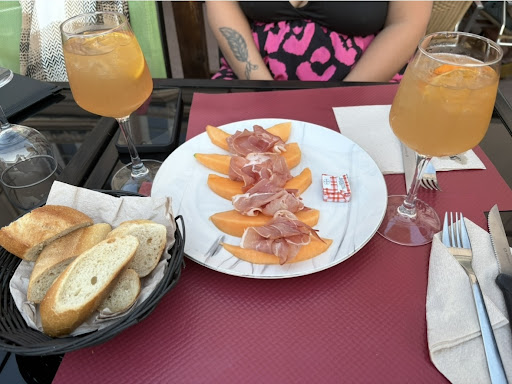 Read moreDe passage à Éperon nous avons décidé de dîner au bellarosa. Pizzeria de grande capacité. Accueil très sympathique mais c'est tout ! Avons mangé un risotto aux gambas et une bavette saignante sauce roquefort. le risotto est servi dans une assiette creuse non stable si l'on veut manger les gambas proprement. Probablement décongelés elles étaient dures. La bavette (cuite au four à bois ?) est présentée coupée en 3, sèche et trop cuite. La sauce au roquefort pas onctueusei, le fromage pas fondu totalement. Quelle déception ! Ill a fallu réclamer le verre de vin vendu au verre (infame) et pas eu d'autre serviette, envolée à cause du vent. Pas prix dd dessert... du coup. Partis mécontents. Prix corrects mais matière première de pierre qualité. Peut être lespizzas sont elles...