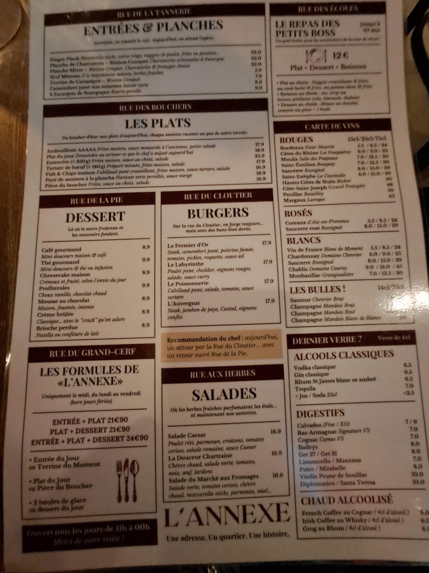 This was supposed to be a nice Sunday evening after a relaxing visit to a gorgeous town of Chartres. While many places to eat where closed on Sundays-Mondays, we tried Barsserie l'AnneXe for its look and a nice outside set-up for a dinner around 18.00. But, while the young waiter was very attentive, caring and nice (but in a situation where he was alone for service, as we have learned later), we were disappointed that the kitchen was still not working (the place was to be open from 12 till 22.00 with no metion what-so-ever that there is a different time-table for the kitchen) and, despited being asked by the said waiter to patient for 30-40 mins (over drinks), we could not see anything happening till 19.10 but just late staff coming in casually at that time. Thus, not wanting to build further tension (mounting on our side) we left - with a bitter feeling that we have fallen victims of a rather poor organization and information for the etablisement... That is a message for the manager / owner of the place, while we stay appreciative for the kindness of waiter...