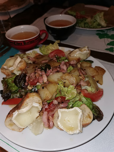 Read moreLa nourriture est excellente, les crêpes et salades extrêmement bien garnies. Certes ont y mange très très bien, en revanche, tout le reste est à changer. La déco laisse deviner des locaux non entretenus, la peinture faite apparemment il y a peu, laisse surtout penser à un cache misère ! Quel plaisir d'arriver et d'être accueillis par une serveuse habillée avec des vêtements aussi sales que l'eau avec laquelle elle lavait les carreaux de la vitrine du restaurant. La scène aurait pu être rigolote si elle ne s'était pas vantée auprès du "chef" : (effectivement, si après le lavage il n'y avait pas d'énormes traces). Sans compter les verres et carafes qui finalement sont à l'image de la vitrine, complètement opaques de calcaire. En parlant des carafes, il est bon de ne pas les remplir trop en avance (surtout lorsqu'il fait chaud), ça évite d'avoir une pellicule qui flotte en surface. Après avoir lu quelques un des commentaires d'autres clients, un conseil, pour éviter d'avoir une nouvelle fois des problèmes de terminal CB, peut-être devriez vous fixer ou cacher le boitier d'arrivée de la fibre (je n'ai pas mis le pied de ma chaise dessus, mais qu'est-ce que c'était tentant, je dois l'avouer !) Un autre point, si la patronne qui d'ailleurs est au demeurant absente demande à son personnel de ne pas mettre certains ingrédients dans les plats, conseil de la DGCCRF, changez votre carte ;) Concernant la propreté, qui franchement est plus que négligée, lorsqu'on vous demande de changer une cuillère parce qu'il y a encore de la nourriture de l'ancien service dedans, inutile de souffler, et lorsque la serveuse va en chercher une autre, c'est presque hilarant de l'entendre la rejeter dans le tiroir des couverts "propres" et de devoir en regarder plusieurs avant d'en trouver une propre. Bref, vous pouvez y aller pour bien manger et vous régaler. Mais attention à ce qu'il y ait bien tous les ingrédients de la carte dans vos plats, et qu'à la place d'un simple verre d'eau par exemple, votre estomac soit prêt à avoir en surplus tout un tas de graisse et consorts issus d'un...