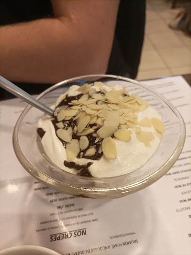 Read moreLa propriétaire a l'air tellement gentille et fragile que j'ai joué les hyprocrites et lui ai dit que tout était bien. Mais elle n'a pas de formation en cuisine. J'ai eu pendant 45 min de la compassion poir Etchebest quand il debarque dans ce genre de resto. La seule compagnie que j'ai eu est celle est nombreux moucherons. Niveau hygiene ce n'est pas aussi catastrophique qu'on peut croire en lisant les commentaires, mais c'est tellement vieux et humide. La cuisine etait a peut pres rangée. Niveau cuisine, ce sont des produits de la marque Simply. Comme indiqué les oeufs sont frais, on peut verifier la date, la boite de 20 est sur le comptoir. Crepe salé, le jambon fumé et l'oeuf ont cuit trop.longtemps dans la crepe mais ca reste decent. On me demande si je veux de la salade car elle met a la demande uniquement car les clients ne la mangent pas. Forcement, c'est de la laitue oceberg sans vinaigrette! On pourrait s'attendre a un peu de mesclun avec une vinaigrette a l'hiile de noix. Crepe au caramel.beurre salé. C'est un caramel.pour décoration qui durcit en 2 min. Heureusement j'ai compris et decoupé ma crepe de suite en petits morceaux. Elle me demande si c'etait pas trop dur car d'habitude elle met de la creme liquide mais la elle est en rupture de stock! Genre y a pas un supermarché autour ou elle peut acheter un petit pot de creme liquide. Bref, quand on n'a pas les comptences même avec le sourire, ca ne peut...