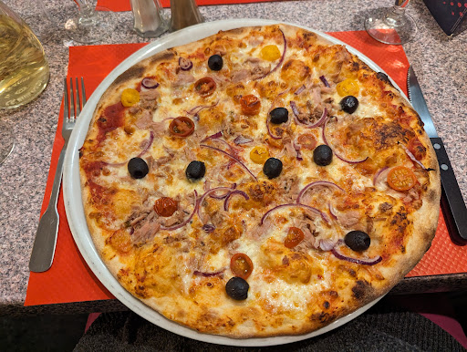 We visited for dinner when we were staying in the B&B Océane hôtel on our journey back to the UK. An absolute gem of a restaurant! The woman serving was so sweet and kind and speaks really good English. We had two huge pizzas, dessert and a pichet of wine and it came to about €45 so very reasonably priced. Even though it was clearly busy and the poor woman was rushed off her feet, the service was fast and the food was excellent. You can park at the nearby car park for free after 7pm as well which was a bonus! We wouldn't hesitate to come back....