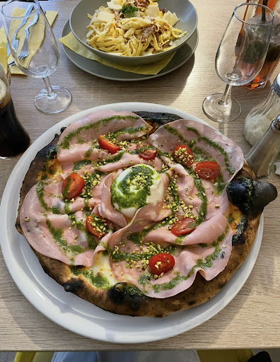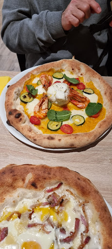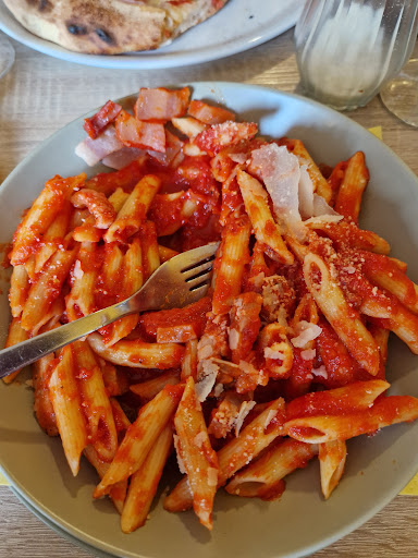 Quelle dĂ©ception. Cette pizzeria dont on voit la pub au cinĂ© m avait Ă©tĂ© recommandĂ©e. La cuisine italienne en vrai . Surtout les pizzas . Bon alors dĂ©jĂ je suis team pasta đ On y Ă©tait hier ( sans avoir pensĂ© Ă rĂ©server) on s est retrouvĂ© Ă l Ă©tage. Bon , soit . MalgrĂ© 2 fenĂȘtres ouvertes , il faisait une chaleur . C est l ete , Soit . Il est 19h30/45 . Une jeune femme nous accompagne, un autre remet les menus . Et 1ere attente . On voit de suite les soucis . Un apero servi en mĂȘme temps que le plat . ( table voisine ) On a le temps de voir ce qui nous entoure . Les jeunes serveurs font presque le tour des tables pour dĂ©poser les plats et repartent les mains vide . on a d ailleurs rencontrĂ© tous les serveurs . Je ne suis pas du mĂ©tier pourtant j ai des bases On peut oublier son dĂ©capsuleur, renverser les boissons (autre table voisine) Ăa peut arriver. Venir apporter un verre immense de vin rempli Ă peine alors qu'il y a dĂ©jĂ 4 verres sur la table sans en ĂŽter . Rapporter ( enfin) une carafe d eau Ă tempĂ©rature ambiante sans retirer quelques verres . On voit bien qu'ils sont dĂ©butants. On passe commande, avec une jeune serveur . ( sur tablette , je prĂ©cise car on se dit c est organisĂ©...) Burrata et penne arriabiata Burrata et pizza pour mon conjoint. On attend. On est pas si pressĂ©. C est les vacances, samedi soir . On pensait juste aller au cinĂ© ensuite. On attend . On voit les serveurs venir ( monter donc) pour placer des gens ,servir 1 assiette de pates alors que les pizzas des 3 autres convives ne sont pas la en mĂȘme temps. On attend. On se dit " pas grave ", on profite et cinĂ© une autre fois . Les Burrata arrivent . Le pain arrive ensuite Alors , bonne Burrata. FraĂźche. AgrĂ©able. Ăa se mange rapidement quand mĂȘme. On a finit . On patiente pour la suite . On se sent seul Ă l Ă©tage. On aperçoit bien un serveur ou l autre , qui rapporte ce qui a Ă©tĂ© oubliĂ© ou continuer le service. Ah on voit qu'on a finit . On nous dĂ©barrasse . Et on attend... On joue sur nos tĂ©lĂ©phones. Il fait chaud . Les autres tables partent sans prendre de dessert . Lors de l incident des verres , le serveur part chercher de quoi essuyer. Entre-temps, la serveuse apporte des salades et se retrouve Ă devoir nettoyer. Elle a Ă©tĂ© la plus pourtant rĂ©active en s excusant pour la gene (toutefois le plus simple aurait Ă©tĂ© de dĂ©placer les convives Ă une table libre le temps de nettoyer) Nous on attend toujours. 20h45 Arrivent enfin pates et pizza en mĂȘme temps. Je n'ai pas mangĂ© la pizza . Les pates arrabiata sont mon pĂȘche mignon mais la ... Sur le coup j'ai cherchĂ© le piment (fond de l assiette) et puis je suis tombĂ© sur des gros bouts de lard . Vraiment beaucoup et gros. Admettons il y en a dans cette version. Mais ils sont durs, est ce qu'ils auraient du cuir dans la tomate ? L assiette pourtant genereuse est immangeable pour moi en tout cas . J'avais faim , j'ai triĂ© mais je n'ai pas terminĂ© mon assiette Une aberration pour moi . Il faisait chaud , c est tombĂ© lourdement sur mon estomac et je n avais qu'une envie : partir . L Ă©tage se vide mais pas les tables , comme le bar d accueil envahit de verres attendant d ĂȘtre dĂ©barrassĂ©s aussi. Peut etre qu'on est mal tombĂ© En tous cas ,pour un samedi soir avec des rĂ©sas , je crois qu'il faut revoir l'organisation . Je ne blĂąme pas les 3 serveurs, il faut bien commencer et apprendre toutefois je doute que les tĂąches soient clairement Ă©tablies. Je pense aussi que l Ă©tage aurait dĂ» ĂȘtre fermĂ© si la gestion des deux salles et terrasses Ă©taient deja compliquĂ©es comme l a dit le serveur italien et la dame de maison ( il y a du monde en bas... ) il vaut mieux refuser du monde qui reviendra plutĂŽt que dĂ©cevoir des clients qui ne prendront pas le risque de revenir. Car pour finir , alors qu'on pensait profiter d un tour en ville on a du rentrer trĂšs vite car j'ai Ă©tĂ© malade (Genre urgence toilettes) Alors, avec la chaleur , l eau pas fraĂźche le lard ,l attente, je ne peux pas affirmer d ou ça vient toutefois notre a soirĂ©e...
