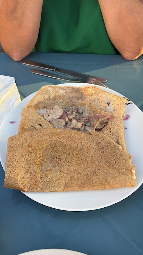 Read moreCrêpes chères pour la qualité (elles manquaient de garniture, chèvre de qualité moyenne et andouillette bon marche,un peu élastique). Service rapide ! Concernant l’atmosphère, je n’ai pas eu une bonne expérience, en allant payer, j’ai eu le « plaisir » d’assister à des engueulades plutôt violentes en provenant de la cuisine et les personnes étaient clairement alcoolisées (nous sommes venus un mardi après midi…) ce qui est 1) très gênant et 2) très désagréable et irrespectueux pour les clients car nous ne savions plus où nous mettre. Second moment désagréable, en allant aux toilettes au fond de la cour, un homme en train de dormir sur le banc près de la cuisine, une bière à la main, clairement en train de décuver. Le jeune serveur est très sympathique, il relève...