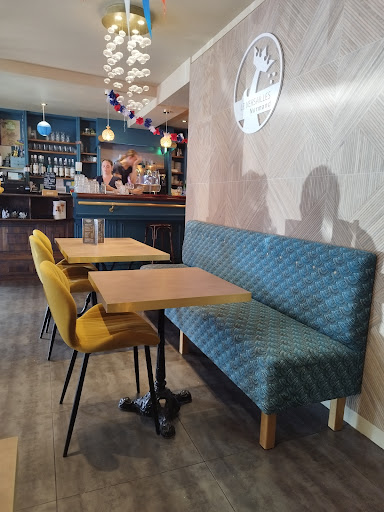 Good coffee, loved the sherbert. I had the fish and chips, the fish batter was good but the fish was cut thin and was tough, the fries were good. We were looking out on a parking lot so not much atmosphere. My partner ordered the burger and he told them he was allergic to pork and there was bacon on the burger. He wasn't too happy and felt sick afterwards. The service was prompt and friendly, they have a friendly corgi named Oscar that made at feel at home. The place was quite busy and we got seated, served quickly. Just wishing my poor honey had been happier. He is from that area and expects a lot. I'm from the states where everything is served from frozen, nothing is fresh so I was quite happy overall. Looking forward to seeing...