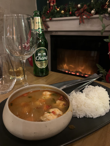 Super. Excellent service! We were warmly welcomed to this cosy but spacious Thaï restaurant. The waitress was so kind and attentive. Her English was good and we learnt a new French word for chopsticks 👍😁. 🥖🥖 The food is amazing and delicious. We were very impressed. Even though 14 diners were eating at tables, there were quite a few takeout orders prepared too. Food arrived fast. We didn’t feel rushed, and we felt very relaxed. Thanks for a superb well prepared meal. I highly recommend and we will visit...