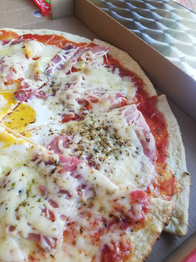 Pizza : Pâte préparé d'avance (étalé et roulé à l'avance ... donc sèche), on aurait dit une tortilla mexicaine. Champignon de paris en boite de conserve. Aucune saveur, aucune texture, si c'est pour ajouter un ingrédient qui ne sert à rien, autant ne pas le mettre (sur une pizza on met des champignons frais ... c'est la base !). L'Origan mixé en dose homéopathique ne sert qu'a ajouter des petits point noir (normalement l'origan est constitué de feuilles, ce n'est pas une fine poudre). Charcuterie type salamis pas cuit (limite "froid", mais pas surprenant, puisque sous les 2 couches de fromage) donc en gros morceau assez peu agréable à manger. Le tout pour plus de 10€ ... (ce qui est beaucoup trop cher pour la qualité douteuse de ce que j'ai mangé).