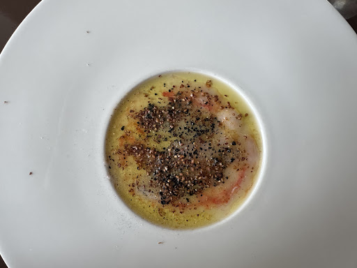 Réservé la veille, pour 12h15, arrivés sur place à 12h10, nous décidons d’entrer. De suite on nous fait remarquer que le restaurant n’est pas encore ouvert de façon assez autoritaire. Mais ! On nous accompagne vers notre table. Mon épouse pose son parapluie sur le rebord de la fenêtre et la outrage, le serveur indique à madame que cela va abîmer la boiserie, il est vrai que vu l’état de la peinture celle-ci aurait bien besoin d’être refaite. Sans attendre, nous recevons la carte des menus et commandons l’apéritif. A peine ceux-ci servis, on nous demande avec insistance si nous avons des questions sur le menu, alors que nous l’avions en main à peine 2 mm. Pas de mappe sur la table, celle-ci vitrifiée de façon bricolage, un petit coup d’éponge entre le plat et le dessert. A oui, on nous explique que les couteaux du restaurant ne doivent pas être posés sur l’assiette pendant le repas, vu leur forme spécifique ils tiennent seuls (toujours de façon très autoritaire) Deux menus a 77 € : hors d’œuvre (1 Ormeau). Plat (1 /2 Homard) (les deux délicieux) Dessert Tartelette à la rhubarbe sur un lit de Spéculos (Bof) 5 verres de vins, apéritif compris) 200€. Cuisine correct, mais on est loin de la grande gastronomie. Mais pour qui ce...