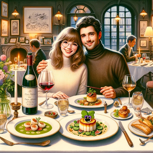 Pour accompagner ces délices, un Chinon d'exception. Le vin, rouge profond, dans des verres finement ciselés, révélait des arômes de fruits mûrs et d'épices douces, un élixir qui se mariait à la perfection avec nos entrées.