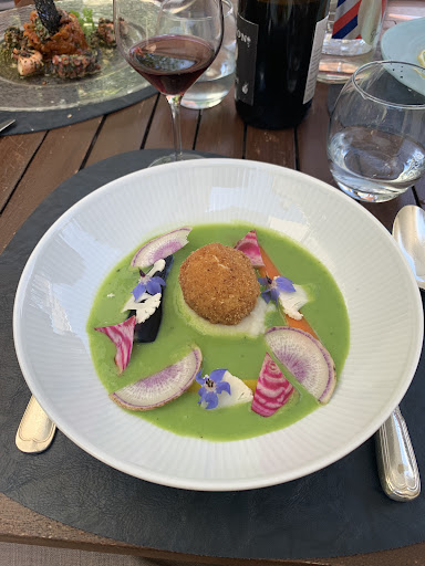 Read moreBeautiful setting with tables outside overlooking the river. Special mention to the staff for their excellent service. The food was exquisite. I had the crab with guacamole and passion fruit to start. Octopus was amazing. The lamb was delicious. I had pied de Cochin which was good but not quite my thing. Cheeses and coffees to round off. Local wines...