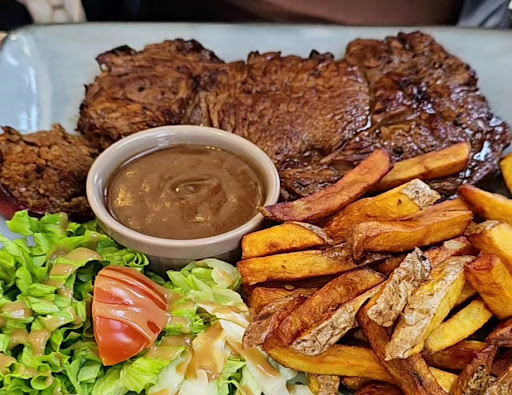 Une pièce d'Entrecôte de 280g très généreuse, des frites maison à se lécher les doigts...le Chef utilise la technique de faire cuire les pommes de terre une deuxième fois avec la peau...ce qui donne le goût et l'apparence fumée de l'extérieur mais tendre à l'intérieur...bravo! Sauces, accompagnements et desserts également succulents, très bien. Au moins 3 différents types de vin au verre et/ou à la bouteille sur le menu boissons. Tres bon rapport qualité-prix...difficile de faire mieux en cette période d'inflation.