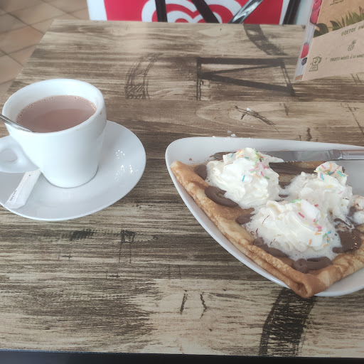Lovely staff and great service. We tried to get a table at the local brasserie du château but it was full and luckily we spotted this Little gem that was stille open. We were greeted by a lovely smile, the waitress got us a table from the back as we wanted to sit in the shade. We ate the Classic steak and chips, the meat was tender, the chips crispy and the drinks ice cold. Bliss. And a great view on the castle is the cherry on the cake! The waffles were light and crispy. I...