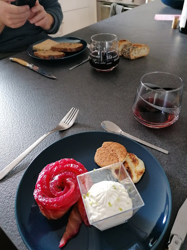 Read moreNous avons commandé pour la Saint-Valentin le menu proposé à 42€ et nous avons été déçus. Concernant mon entrée, le saumon était très salé, les blinis minuscules et au nombre de 2... Concernant le plat, mon copain a eu 6 tranches de magret de canard avec une cuillère de mousseline de céleri (bonne), une cuillère de champignons et des épinards branches natures... De mon côté la déception a été plus grande : 6 noix de saint-jacques toastées accompagnées de chou-fleur cuits... vapeur en très petite quantité, sans aucun travail particulier. La sauce crème fumée était bonne. Les desserts rattrapaient le repas même si je n'ai pas senti le champagne dans la tarte chocolat. Mon analyse de ce menu, qui mettait en avant en cerise sur le gâteau une demi-bouteille de champagne offerte, est que celle-ci ... ne l'était pas et était incluse dans le tarif. Sauf que nous n'avions pas choisi le menu pour la bouteille offerte mais bien pour la description des plats, que nous avions pensé très élaborée. En bref, pour 42€ le rapport qualité-prix n’était pas au rendez-vous....
