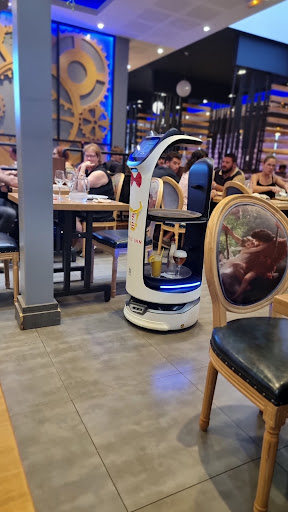 Le décor moderne et plaisant contribue à l'ambiance générale, créant un cadre agréable pour profiter du repas. Mais ce qui m'a vraiment surpris, c'est la présence d'un robot serveur ! Le voir se déplacer et interagir avec les clients est une expérience fascinante, qui ajoute une touche d'originalité et de modernité à ce restaurant.