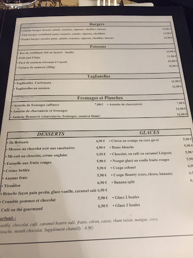 Le menu farmer nous rĂ©gale de son entrecĂŽte accompagnĂ© d'un vin rouge formule intĂ©ressante mais trĂšs bourratif pour ma part. Le cafĂ© gourmand accompagnĂ© de ses 4 desserts (pana cotta, moelleux au chocolat (salĂ©e ?) avec sa crĂšme anglaise , crĂšme brĂ»lĂ©e, et d'un sundae) n'a pas arrangĂ© mon cĂŽtĂ© gourmand. Un 14 fĂ©vrier, le resto Ă©tait bondĂ© les serveurs rĂ©actifs malgrĂ© ce monde, allaient dans tous les sens je les sentais pas dĂ©tendus et donc moins attentifs aux dĂ©tails, je trouve ça dommage, ils auraient besoin de plus de reconnaissance dans leur travail et savoir pouvoir prendre le temps de communiquer. J'ai ressenti cette brasserie comme une chaĂźne industrielle et non conviviale pour moi. J'apprĂ©cie plus de venir prendre mon cafĂ© ou autre en journĂ©e mais j'Ă©viterai le cĂŽtĂ© restaurant oĂč on est tous trop serrĂ© , pas assez d'espace entre les tables et oĂč le bruit est constant. De plus installĂ©e cĂŽtĂ© cuisine oĂč ils allaient chercher les plats le va et vient en devenait fatigant et bruyant avec les portes battantes. L'agencement serait a revoir. A revoir quand il y aurait...