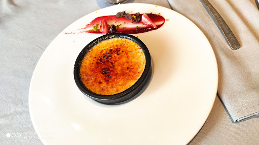 Même si la carte est contenue avec quelques entrées, plats, desserts et deux menus, la cuisine est excellente. Pas de photo de l'entrée qui était un "Cannelloni de jambon Serrano, Mousse de poivrons rouges au piment d'Espelette, Mesclun de salade". Le jambon et la mousse délicatement relevée allaient très bien ensemble. La Suggestion du Chef était un Magret de canard accompagné de pommes grenailles et de salade. Cuisson rosée excellente, la sauce était excellente. Pour finir avec une fraîcheur, la Crème brûlée au citron vert. Le citron était présent mais pas trop, c'était excellent.