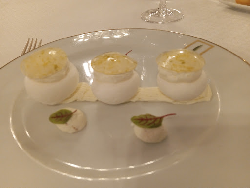 On a aimé : La visite dans le potager avant le repas, et les explications généreuses du jardinier, qui nous a fait expliqué le fonctionnement concret de son binôme avec le chef, qui nous a fait goûter des fleurs, feuilles aux très différents (on a même découvert la mertensia, dont les feuilles ont un goût d’huître très fort). Réellement passionné et passionnant, cet homme est une mine d’informations, et nous a annoncé le tournage d’une émission avec Stéphane Marie (Silence ça pousse) dans la semaine. Une photo du château depuis le potager (qui comprend aussi une impressionnante collection de papillons et insectes et un salon de thé) L’apéritif se prend dans un petit salon, avant le début du service (à 19 h 30) et après la visite du potager (qui ferme à 19 h). Heureux préliminaire, dans un endroit cosy, décoré de grands tableaux de généraux chouans (voir l’histoire du château et de la région) Dès le début du repas, nos amis ont su qu’ils avaient eu raison de nous faire confiance : l’amuse-bouche, déjà à tomber, généreux, riche en goût et la petite fleur d’ail, que le jardinier nous avait annoncé avoir apportée, ainsi que d’autres, à 18 h, pour le repas du soir… Idem pour la suite du repas, pas la moindre fausse note, aussi bien au niveau du vin, des plats, que du service… On apprécie l’omniprésence de fleurs, légumes, feuilles, et fruits du potager. Très belle carte des vins de Bordeaux, légèrement hors budget (quelques centaines d’euros) mais très bon choix de notre vin de Bourgogne