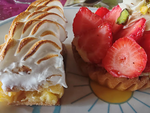 j'aime particulièrement les parts de "Sebastopol" aux noisettes , framboises: un délice qui se garde sur plusieurs jours , avec un café c'est juste ce qu'il faut! parfois il n'y en a plus, bououh je prends autre chose mais de toutes façons c'est toujours frais et bon. Bravo pour tout ce boulot et en particulier pour ces...