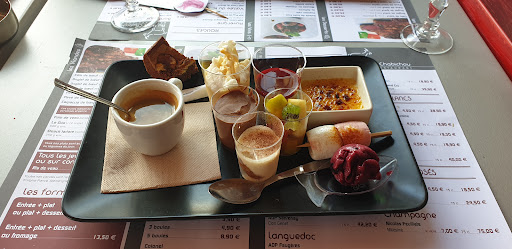 Read moreQue deux Ă©toiles car si les collĂšgues avec qui je suis aller manger Ă©taient ravi quant Ă la viande (bien gros morceau quand mĂȘme pour les dames - 300gr minimum de mĂ©moire et 20⏠mini le plat Ă la carte), pour quelqu'un qui ne mange pas de viande ou trĂšs peu comme moi, ben y a rien... obligĂ© de prendre la formule midi, moitiĂ© moins cher que n'importe quel plat Ă la carte, partant du principe que comprenant entrĂ©e/plat/dessert, les morceaux de viandes serait beaucoup plus petits, donc potentiellement moins de gaspillage. Bref. pour des amateurs de viandes, c'est peut ĂȘtre sympa, mais pour leurs collĂšgues ou amis il n'y a que dalle et clairement, il ne passeront pas un...