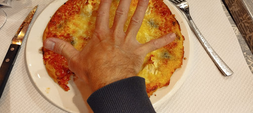 Read moreÉviter l'arnaque. Les pires pizzas jamais mangées, à la fois pour la dimension et pour le goût. Nous avons pris 3 pizzas : 2 adultes et 1 enfant. Sur la photo vous verrez il y a peu différence de diamètre entre adulte et enfant. Donc nous avons là des pizzas adulte bien plus petite que ce qu'on peut trouver n'importe où ailleurs (diam 30 usuellement). Au prix de la pizza, c'est la 1 ère arnaque. J'appelle ça du vol car on ne vous préviens pas. Et en plus on reste sur sa faim. 2eme point c'est la première fois que je suis obligé d'absorber le gras avec la serviette en papier de ma pizza au fromage tellement il y en a. Tout simplement écœurant ! Même la pizza végétarienne était décevante. De quoi repartir vraiment dépité. La serveuse était bien confuse. Mais elle n'y est pour rien. La responsable de salle a compris mon désappointement et a eu la délicatesse de nous offrir l'apéritif sur l'addition. Honnêtement le patron absent sait ce qu'il fait avec ses petites pizzas et ses produits bas de gamme. Ce resto a tout misé sur sa position stratégique au pied de la cathédrale et sa déco, mais c'est de la poudre au yeux. Je laisse peu d'avis mais là,...